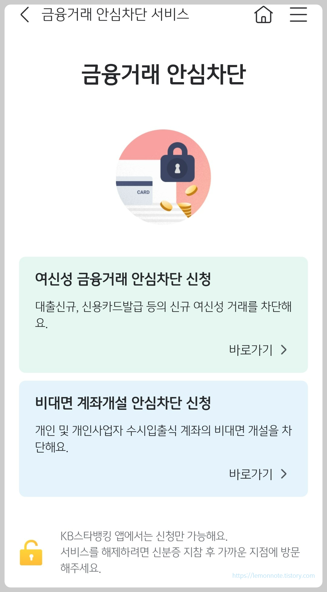 다만, 차단 해지를 원하실 경우 은행 영업점을 직접 방문하셔야 하므로,