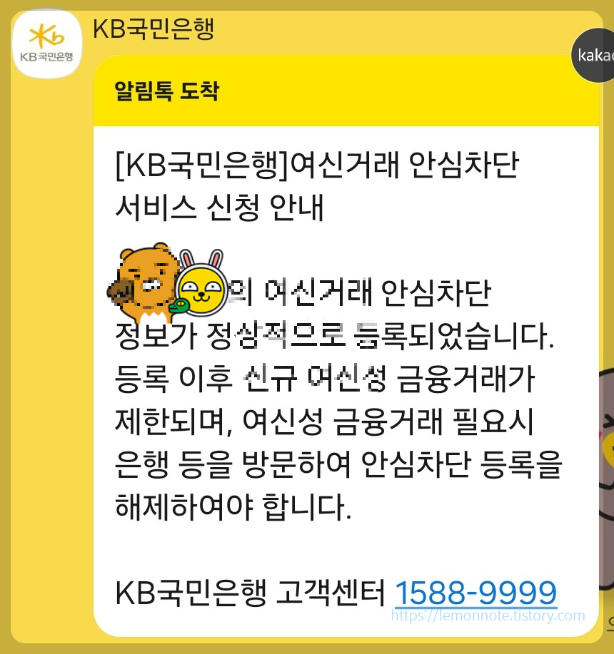 **국민은행 알림톡을 신청하신 경우 신청 결과과 문자나 카카오톡으로 확인됩니다.