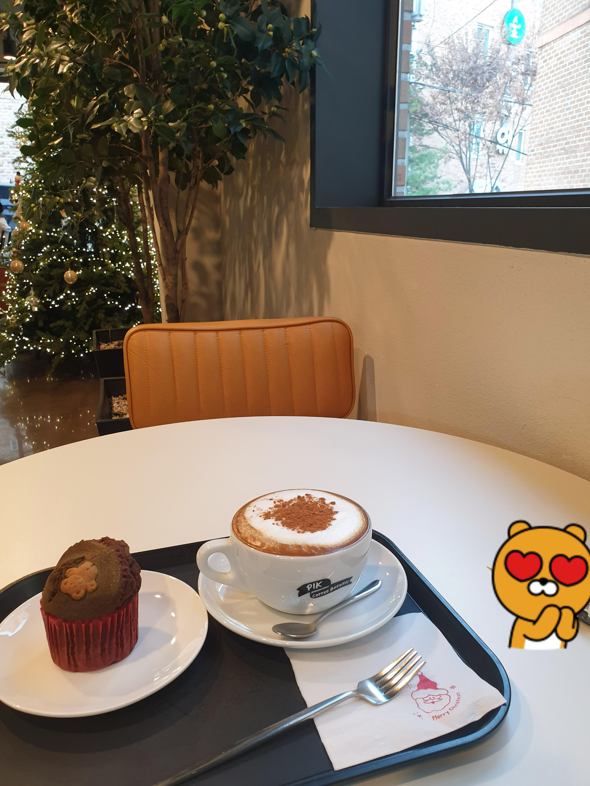 추운 겨울 주문했던 따뜻한 카푸치노와 초코머핀입니다.